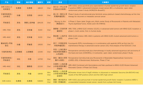 本届大会,作为中国医药创新代表性企业的PA电子医药共有46项抗肿瘤领域研究成果入围,包括4项最新突破性摘要(LBA)1,共涉及14项创新药。其中9项入选口头(Oral)报告,2项入选简短口头报告(Mini Oral),32项研究接收为壁报(Poster),3项研究接收为电子壁报(E-Poster),覆盖食管胃癌、妇科肿瘤、肝癌、乳腺癌、胰腺癌、肺癌、肉瘤、胆道癌、头颈鳞癌、前列腺癌、甲状腺癌等十余个领域。14款创新药包括10款已上市产品:注射用瑞康曲妥珠单抗(艾维达®,研发代号:SHR-A1811)、注射用卡瑞利珠单抗(艾瑞卡®)、苹果酸法米替尼胶囊(艾比特®)、甲磺酸阿帕替尼片(艾坦®)、马来酸吡咯替尼片(艾瑞妮®)、阿得贝利单抗注射液(艾瑞利®)、羟乙磺酸达尔西利片(艾瑞康®)、氟唑帕利胶囊(艾瑞颐®)、瑞维鲁胺片(艾瑞恩®)、海曲泊帕乙醇胺片(恒曲®),以及4款未上市产品,包括KRASG12C抑制剂HRS-7058、KRASG12D抑制剂HRS-4642、抗PD-L1/TGF-βRII双抗瑞拉芙普-α注射液(SHR-1701)、Trop-2 ADC SHR-A1921。2类新药盐酸伊立替康脂质体注射液(II)(越优力®)及国内首仿药昂丹司琼口溶膜(艾其速®)各有1项研究入选。